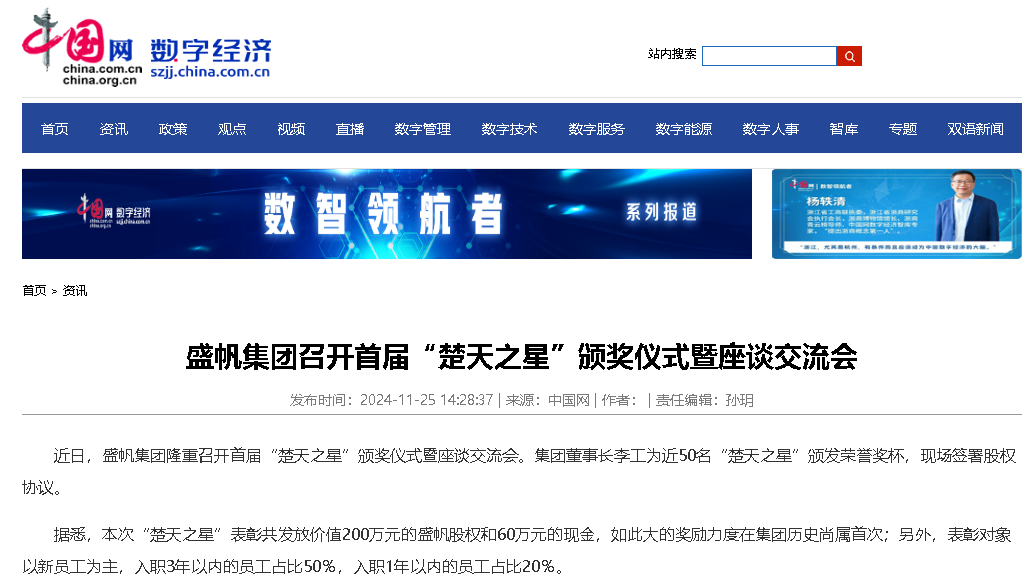 惟楚有才·于斯为“盛”——盛帆集团召开首届“楚天之星”颁奖仪式暨座谈交流会。本次“楚天之星”表彰共发放价值200万元···