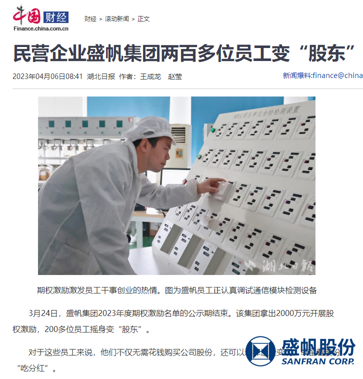 期权激励激发员工干事创业的热情。图为盛帆员工正认真调试通信模块检测设备3月24日,盛帆集团2023年度期权激励名单的公示···