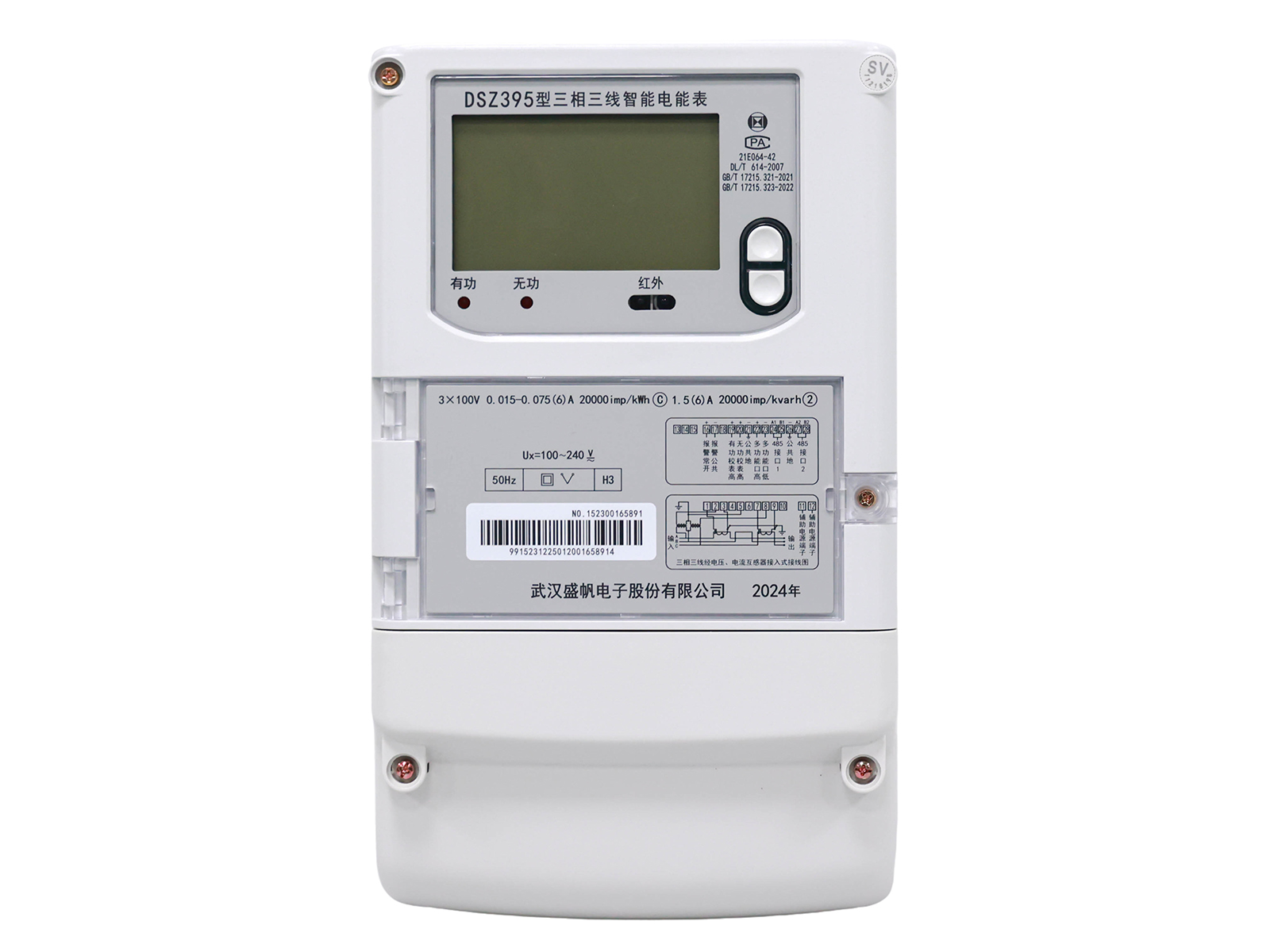 DSZ395型三相智能电能表由测量单元、数据处理单元、通信单元等组成,具有电能量计量、数据处理、实时监测、自动控制、信息交互等功能, 采用大规模集成电路技术、应用数字采样处理技术以及SMT工艺制造的高新智能仪表,用于测量额定频率为50Hz(或60Hz)的有功、无功电能及用电参数,具有多费率、需量测量、事件记录、负荷记录等功能。其技术指标符合GB/T 17215.321-2021、DL/T 645-2007、Q/GDW 1354-2013、Q/GDW 1356-2013、Q/GDW 1827-2013、DL/T 1489-2015、DL/T 1490-2015、DL/T 1491-2015等国家、行业和国网三相智能电能表相关技术标准。具有低功耗、高精度、高可靠等特点。