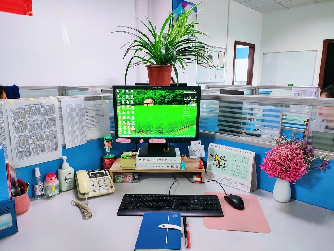 把春天搬进办公室 小姐姐的工位 绿植与鲜花环绕 春意在身边舒展
