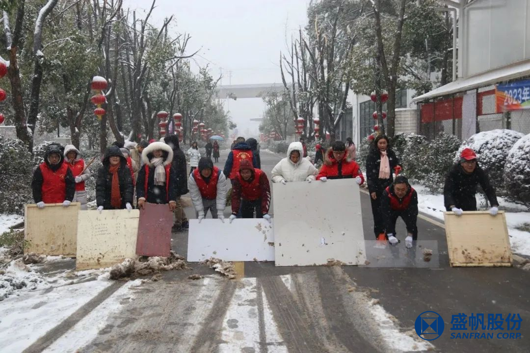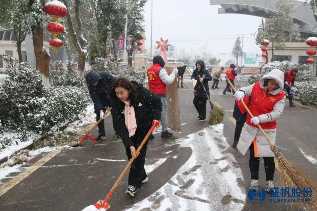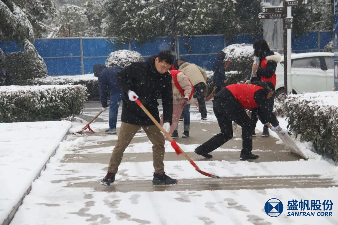 在困难面前,盛帆党总支50余位党员以雪为令、冒雪逆行,修剪被积雪压垮的树枝、清扫道路积雪,确保盛帆园区道路通畅,保障员工及家属出行安全。在风雪中为人民群众筑起一道道坚固的“红色堡垒”,让党旗在除雪保畅一线高高飘扬,让党徽在除雪保畅一线熠熠生辉!