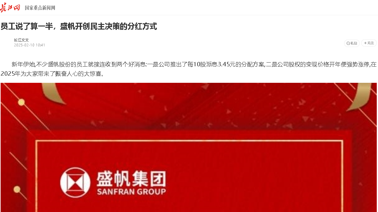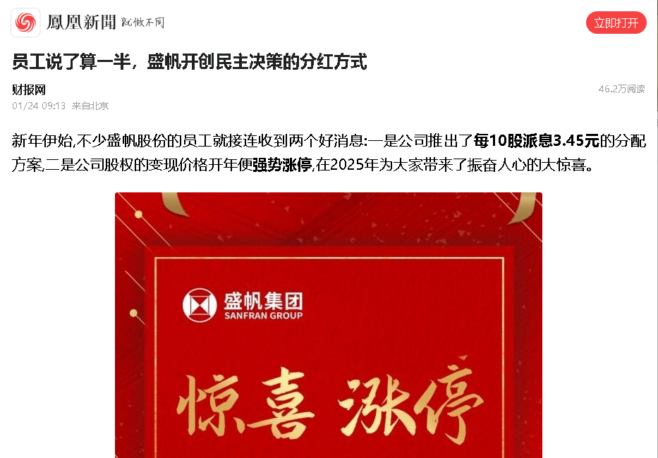 新年伊始,不少盛帆股份的员工就接连收到两个好消息:一是公司推出了每10股派息3.45元的分配方案,二是公司股权的变现价···