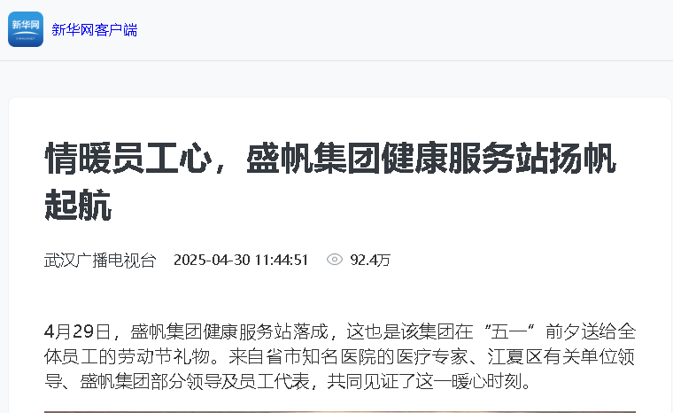 4月29日,伴着浓浓春意,盛帆集团在盛帆工业园内隆重举行健康服务站落成剪彩仪式,来自知名医院的医疗专家、武汉市江夏区···