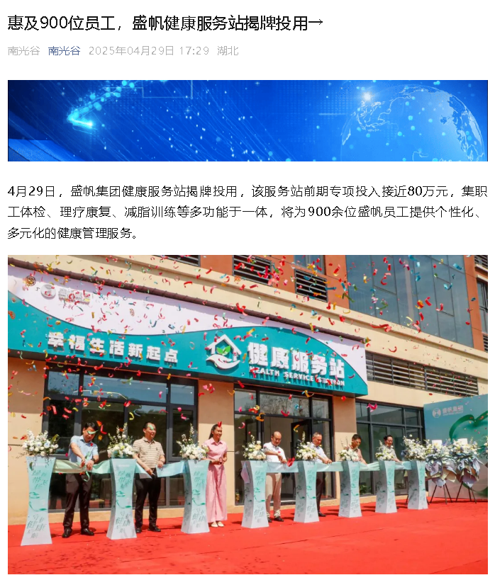 4月29日,盛帆集团健康服务站揭牌投用,该服务站前期专项投入接近80万元,集职工体检、理疗康复、减脂训练等多功能于一体···